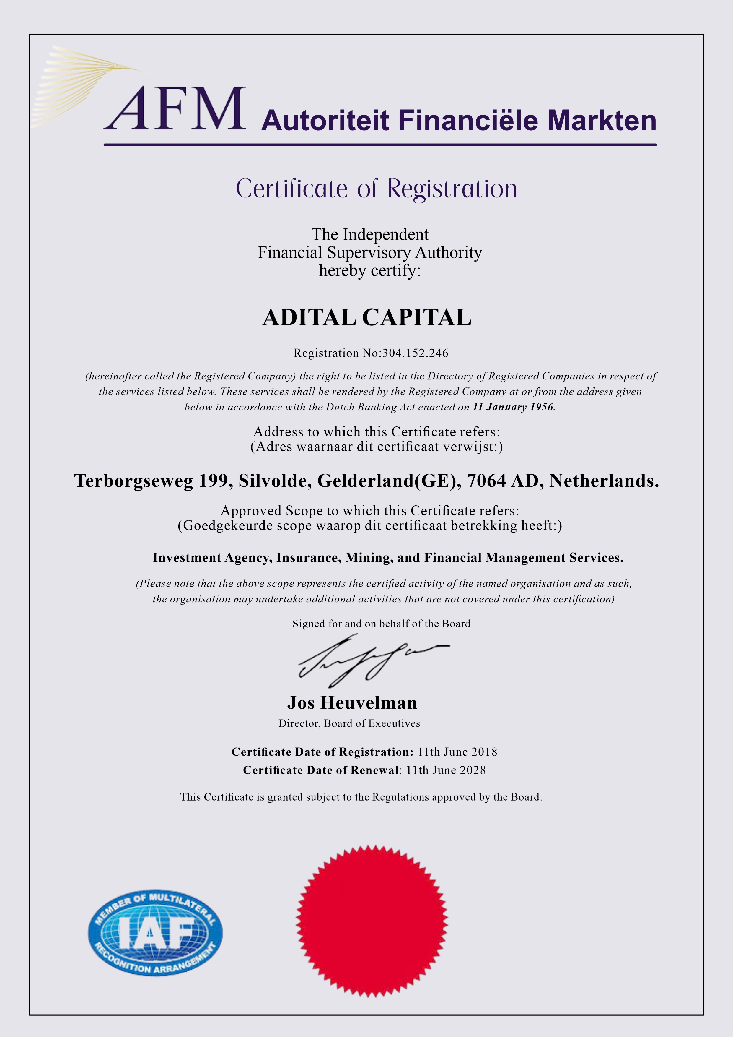 aditalcapital.com is officially registered in the Netherlands with number 12866485.